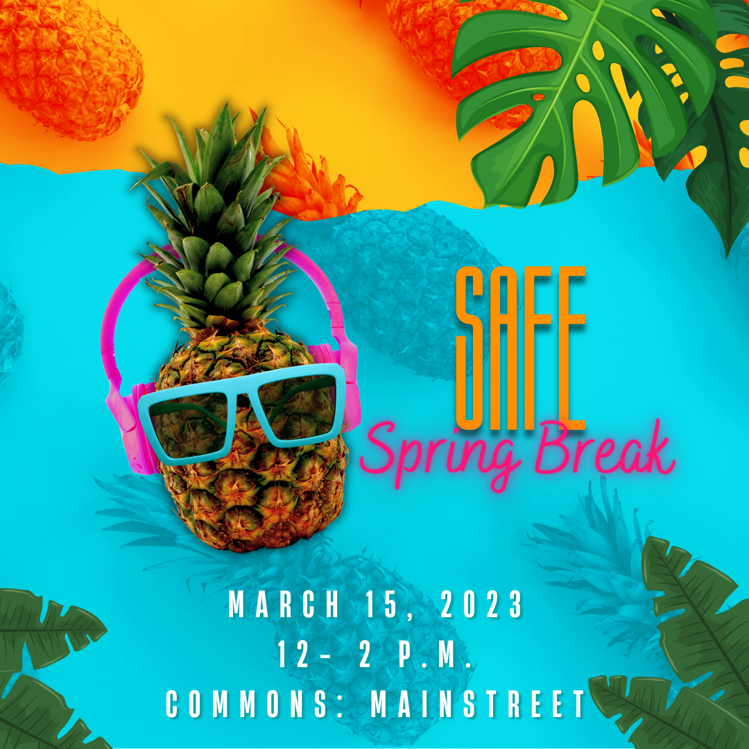 Whether travelling near or far, the Office of Health Promotion wants you to have a safe spring break! Stop by Mainstreet to take some fun tropical-themed selfies, play some trivia, and win prizes!