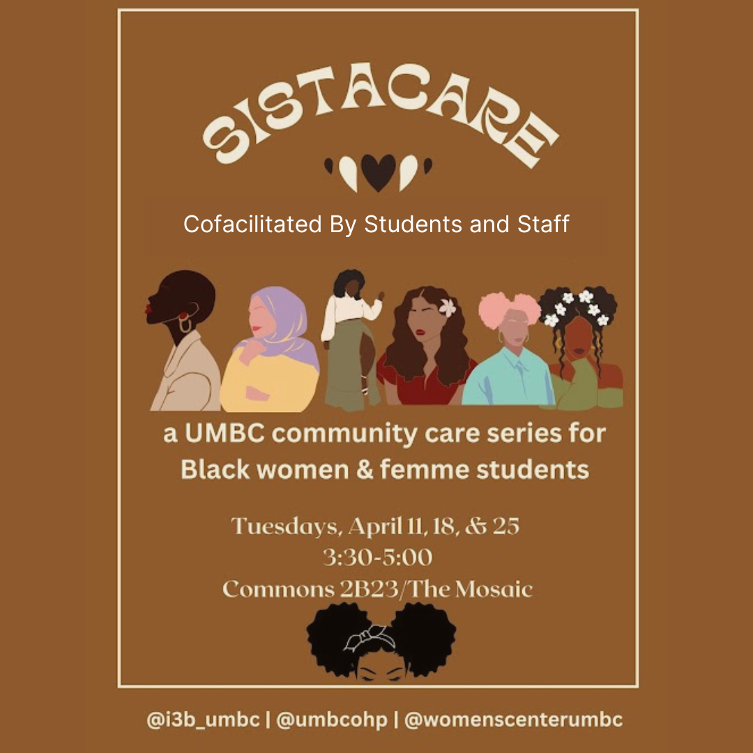 Sis, join us in The Mosaic (Commons 2b23) on Tuesday for Sistacare! A community care series for Black women and femme students on campus. Come connect and chat with us in a community for us by us. In collaboration with OHP and The Women's Center.