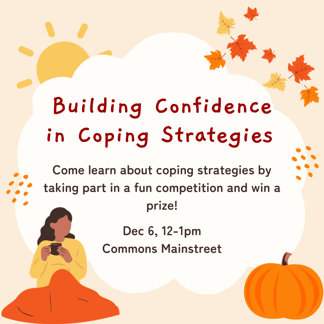 Join the Peer Health Educators for Wellness Wednesdays! This Wednesday stop by The Commons Mainstreet. Come learn about coping strategies by taking part in a fun competition and win a prize!