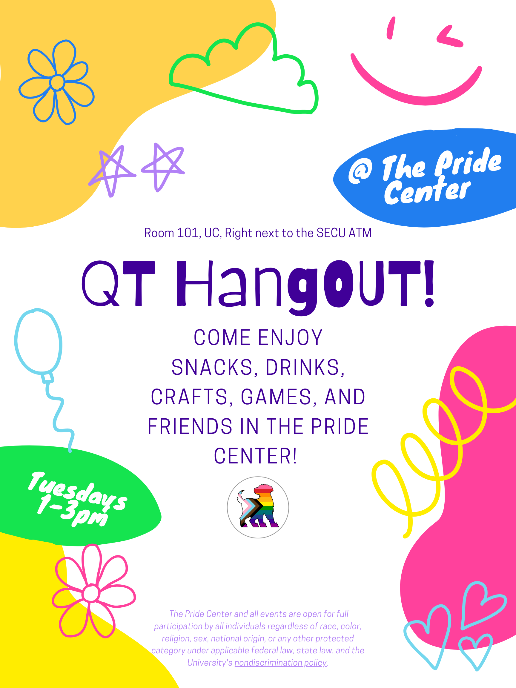 Join us weekly for QT Hangout!! We will have snacks and games and drinks for everyone to enjoy, come and just chill, hang out, and meet new people!!! Every Tuesday, from 1 to 3 pm.