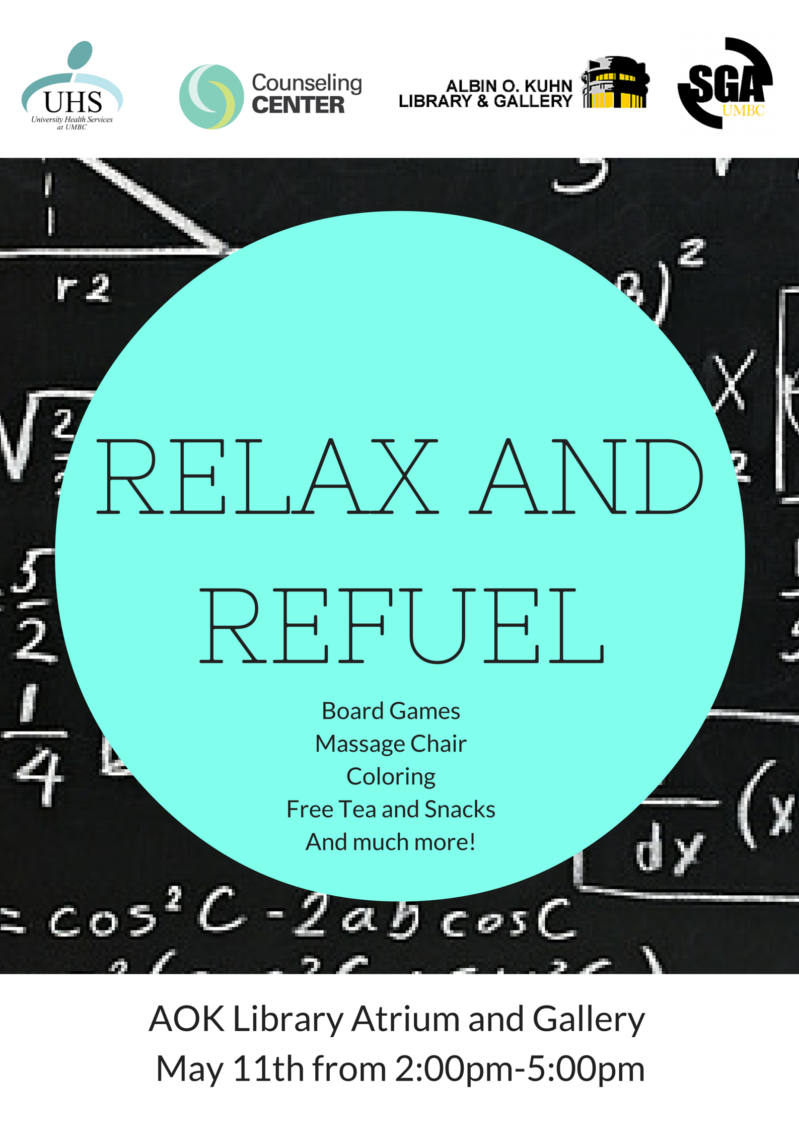 Come give your mind a break on study day from 2:00pm until 5:00pm. There will be board games, massage chairs, free teas and hot chocolate, and more! This event is just what you need before finals week!
